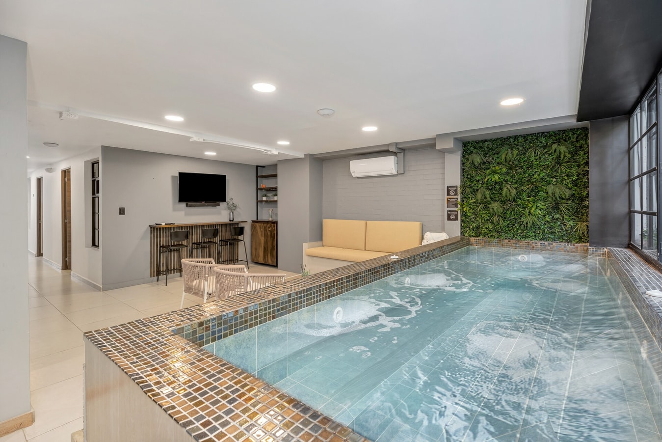 Brand new, 6 bed/7 bath all bedrooms with private bathroom, A/C, safe, and smart TV. Small indoor heated pool, unique views to the river, and incredibly relaxing sound. Bar, 40" smart TV with sound bar, fast WIFI, complete kitchen, dining room, balcony.