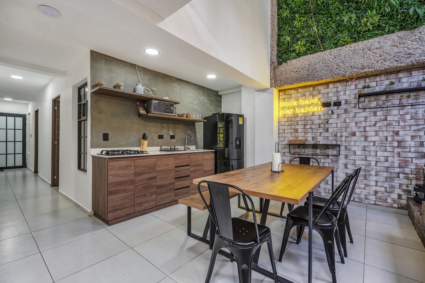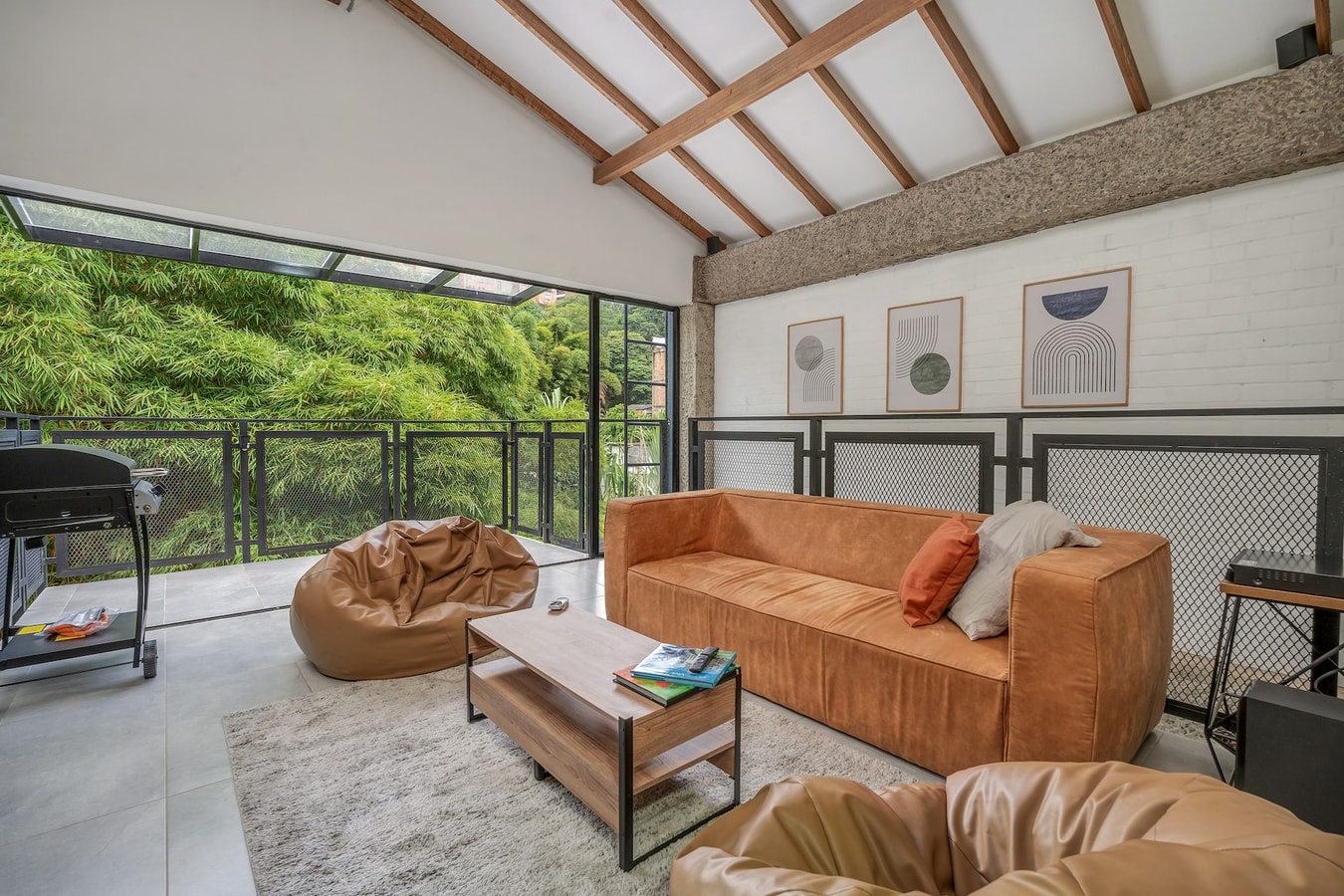 Welcome to our BRAND NEW and spacious duplex penthouse in the vibrant and trendy El Poblado Medellín! - Including 8 bedrooms with A/C and 8.5 bathrooms, Fast WIFI, complete kitchen, beer pong set up and more, this stunning property is perfect for large groups of friends and family. Featuring an incredible small indoor heated pool-spa, a living area with stylish and comfortable sofa and puffs and a huge 75 in smart TV. The balcony offers beautiful views to a creek and big trees and has a BBQ.