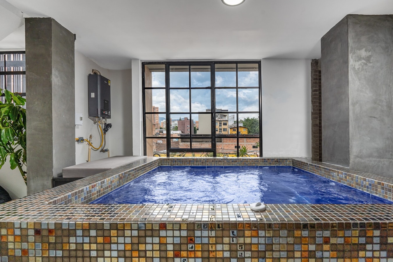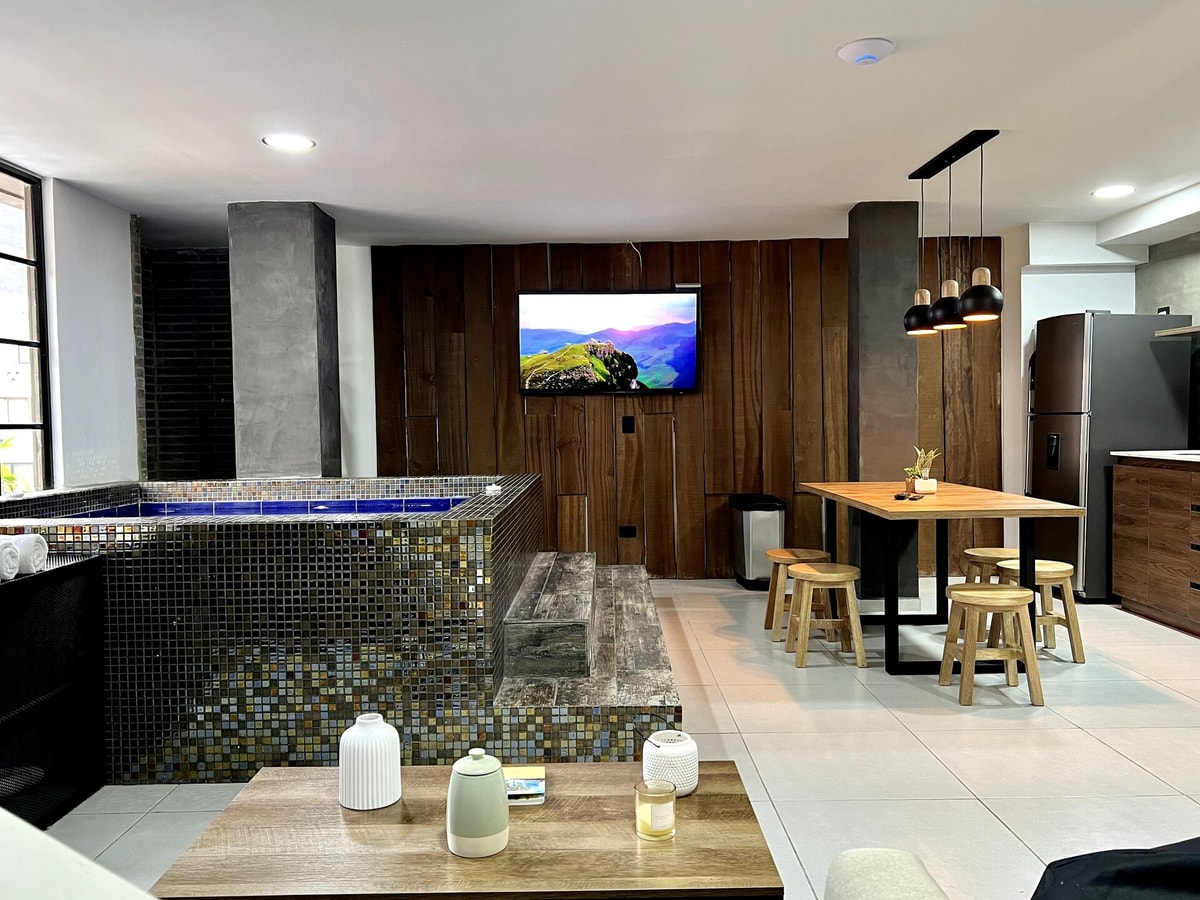 Incredibly centric-location, 3 bedroom with A/C, 3.5 bathroom penthouse with oversized hot tub-jacuzzi in the heart of el Poblado. Modern and stylish design with great open space, living area with 55 inch smart TV, fully equipped kitchen, fast WIFI, hanging egg chair, smoking area. Each room has its own bathroom, A/C, 32 inch smart TV and safe. Don't miss out on the chance to stay in this beautiful penthouse in the heart of Medellín. Book now and experience a one-of-a-kind stay in the city!