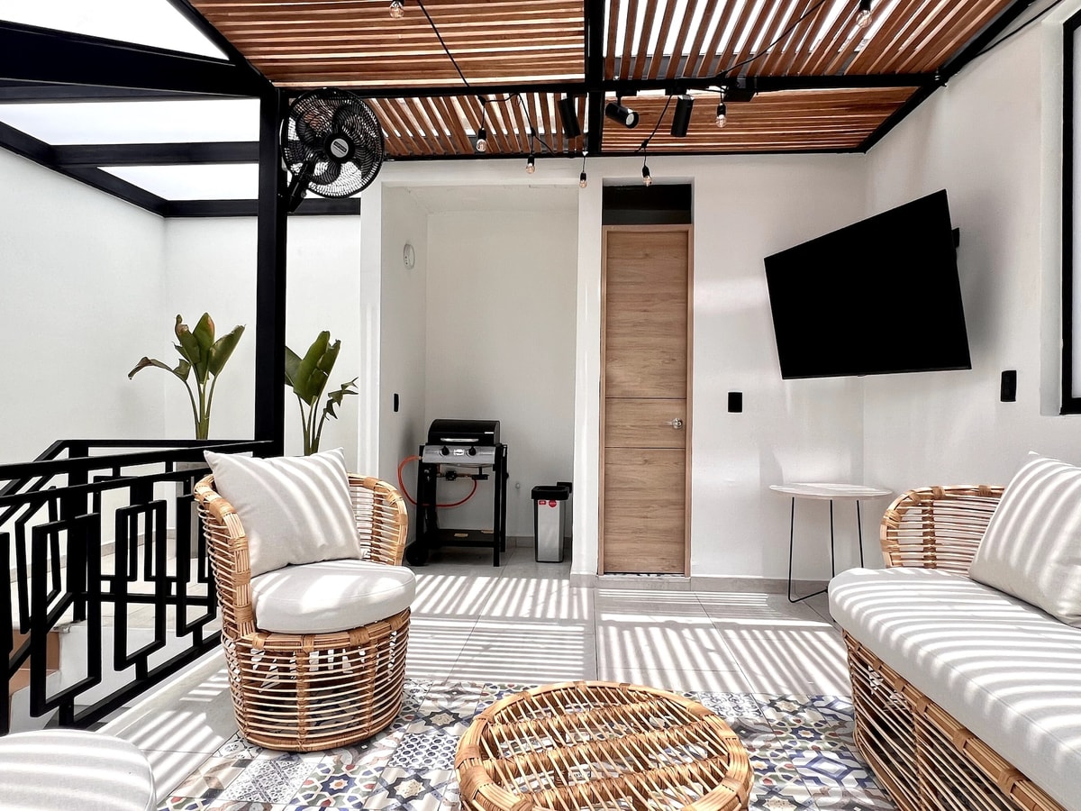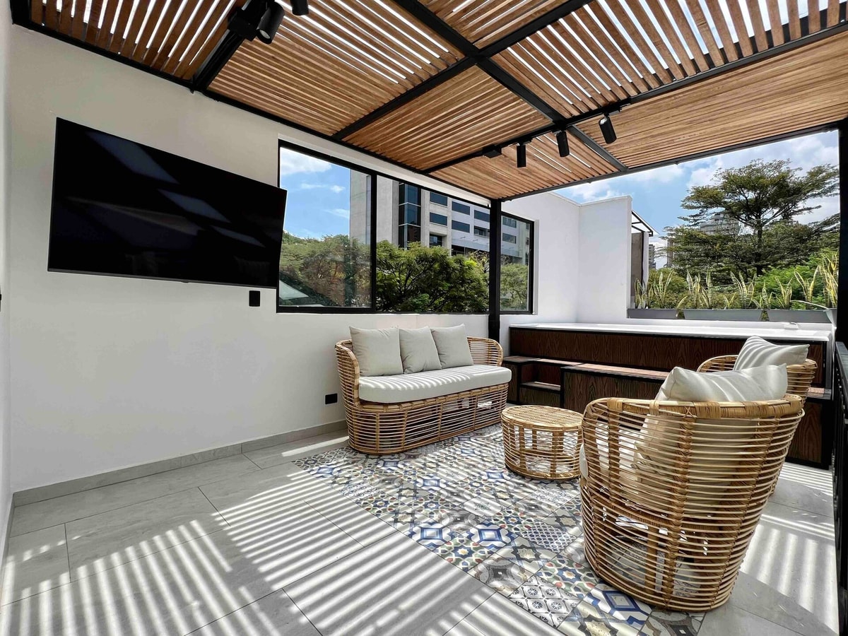 Discover our stunning BORA BORA apartment nestled in the heart of Provenza - El Poblado. Boasting 5 bedrooms, each with a private bathroom, A/C, Smart TV, and a safe. Enjoy the rooftop haven with breathtaking views, an oversized jacuzzi, a lounge area, and a BBQ grill. Indulge in leisure with a billiard table, fully equipped kitchen, balcony, working station, and dining area. The location is Prime, right in the world-renowned Provenza neighborhood. Our 24/7 concierge at reception